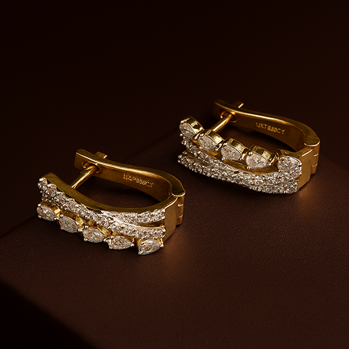 Add a bold, regal touch to your jewelry collection with these striking Designer CVD Diamond Earrings, featuring a stunning mix of marquise-cut and pave-set lab-grown diamonds. Crafted in rich yellow gold (5.770 gm), the design beautifully layers textures and shapes to create a multidimensional, luxurious look.